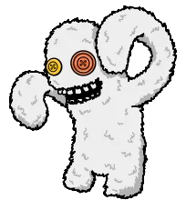 Features: Human-like teeth, wide eyes, baby diaper, tuft of hair